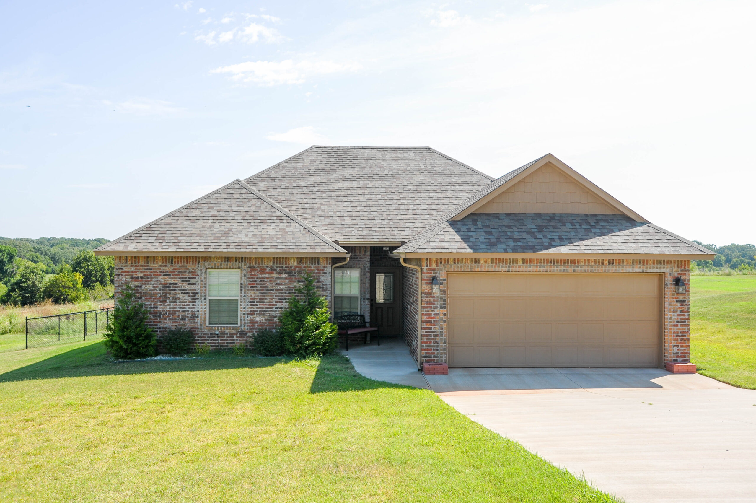 Traditional style home is a very economical house to build. Small front porch as you come in there is a coat closet. Living room has 8′ ceilings throughout whole house. Corner fireplace in living room and dinette has a garden door out to patio. Utility room has a small pantry, two car garage with extra storage space in back corner. Master bedroom is spacious and bathroom has split walk in closets, shower and single sink vanity. Two bedrooms one has a walk in closet and other has a standard closet and a shared hall bath.