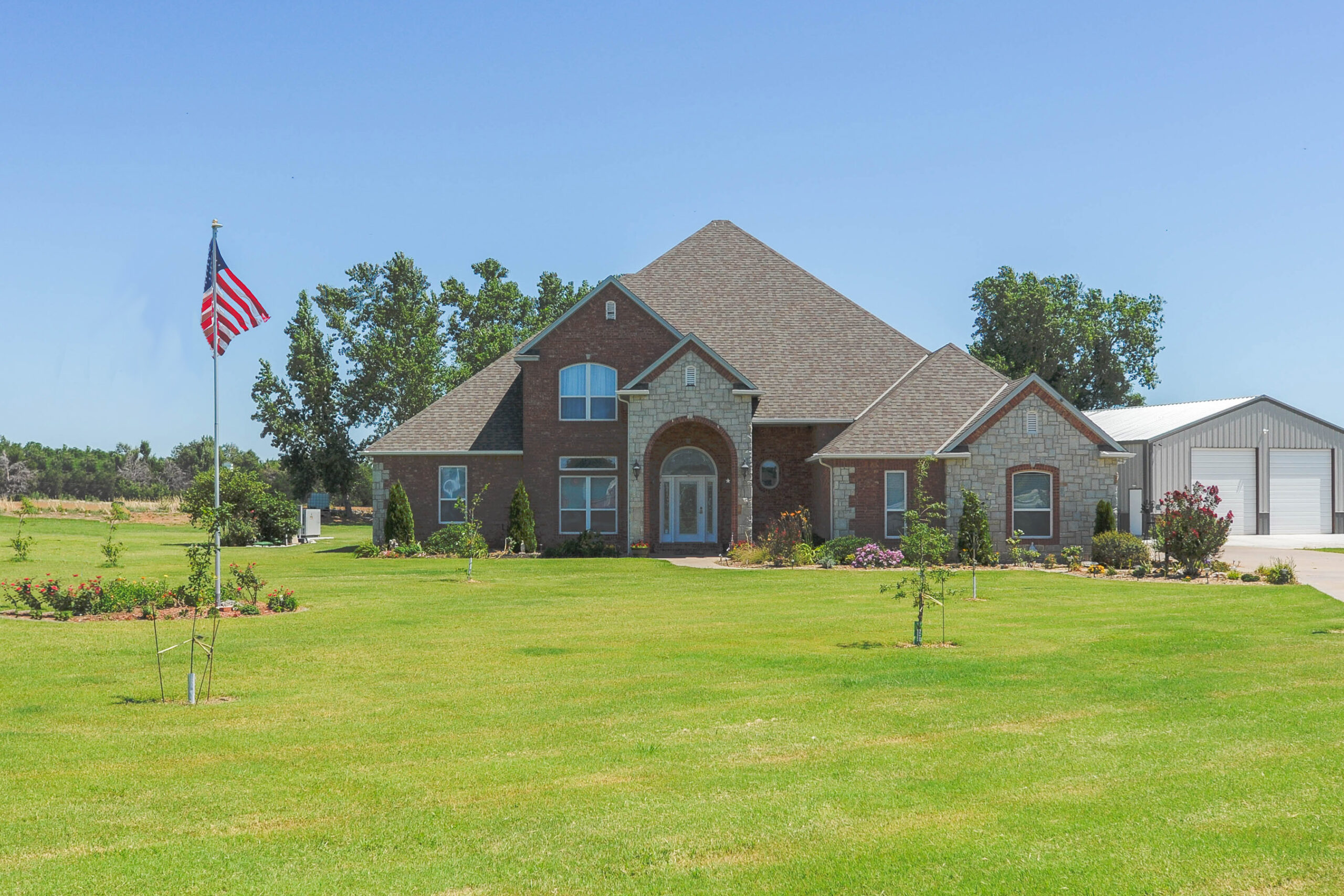 Beautiful 2 story home with tall archways and a open porch. Entry has 19′ ceilings a winding staircase that’s open all the way up to second floor. Two bedrooms with jack/Jill bathroom, large walk in closets. Back bedroom has a bench window seat and french doors that leads out to a second story deck. Theater room has a walk in closet and bathroom, french doors also leads out to a second story deck. Open formal dining room with two corner post, 10′ ceilings. Study with french doors and walk in closet next to a butler’s pantry. Walk in pantry safe room just outside of a spacious large kitchen, center island, open curved snack bar. Dinette has double garden doors that go out to a covered patio and a sun room with corner fireplace. Living room has a corner fireplace, wet bar, and four windows across back wall. Powder bath down a gallery hallway to a four car side load garage with extra storage space. Utility room has a long counter for folding and cabinet sink, closet, broom closet and door out to side of house. Master bedroom has 10′ ceilings, three windows and a garden door out to a screened in patio. Master bath has a split deep walk in closet and smaller walk in closet. Open walk in shower, corner garden tub, split sink vanities, toilette and bidet area.