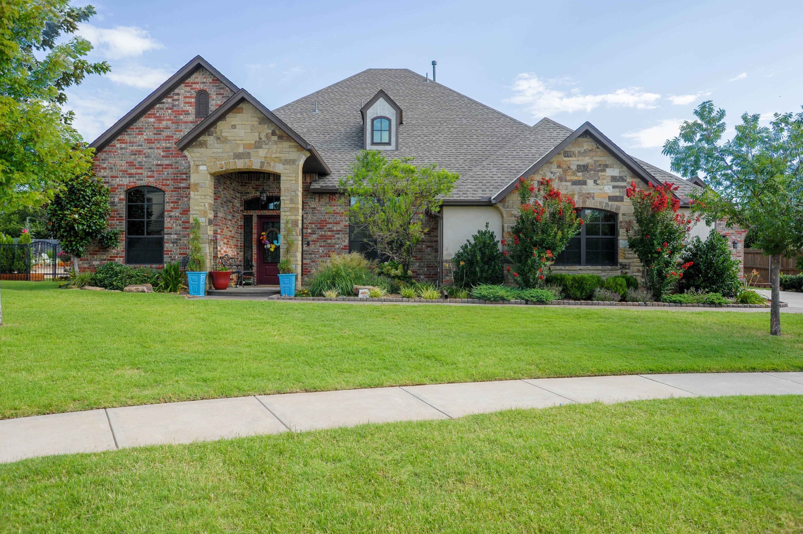 French country home has spacious front porch with archway. Study at entry with double doors and walk in closet. Formal dining room is open to a spacious living room with fireplace and two windows. Kitchen has island and a walk in pantry open to dinette with door out to covered patio. Master bedroom has 10′ box ceilings with picture window. Master bathroom has corner garden tub, open door less shower, walk in closet with access to utility room. Utility room has a sink, drip rod and mud bench. Three car split garage single car has no access to house. Two bedrooms have jack/Jill bathroom and walk in closets. Staircase leads up to a spectacular bonus room/media room combo with wet bar, walk in closet and powder bath.